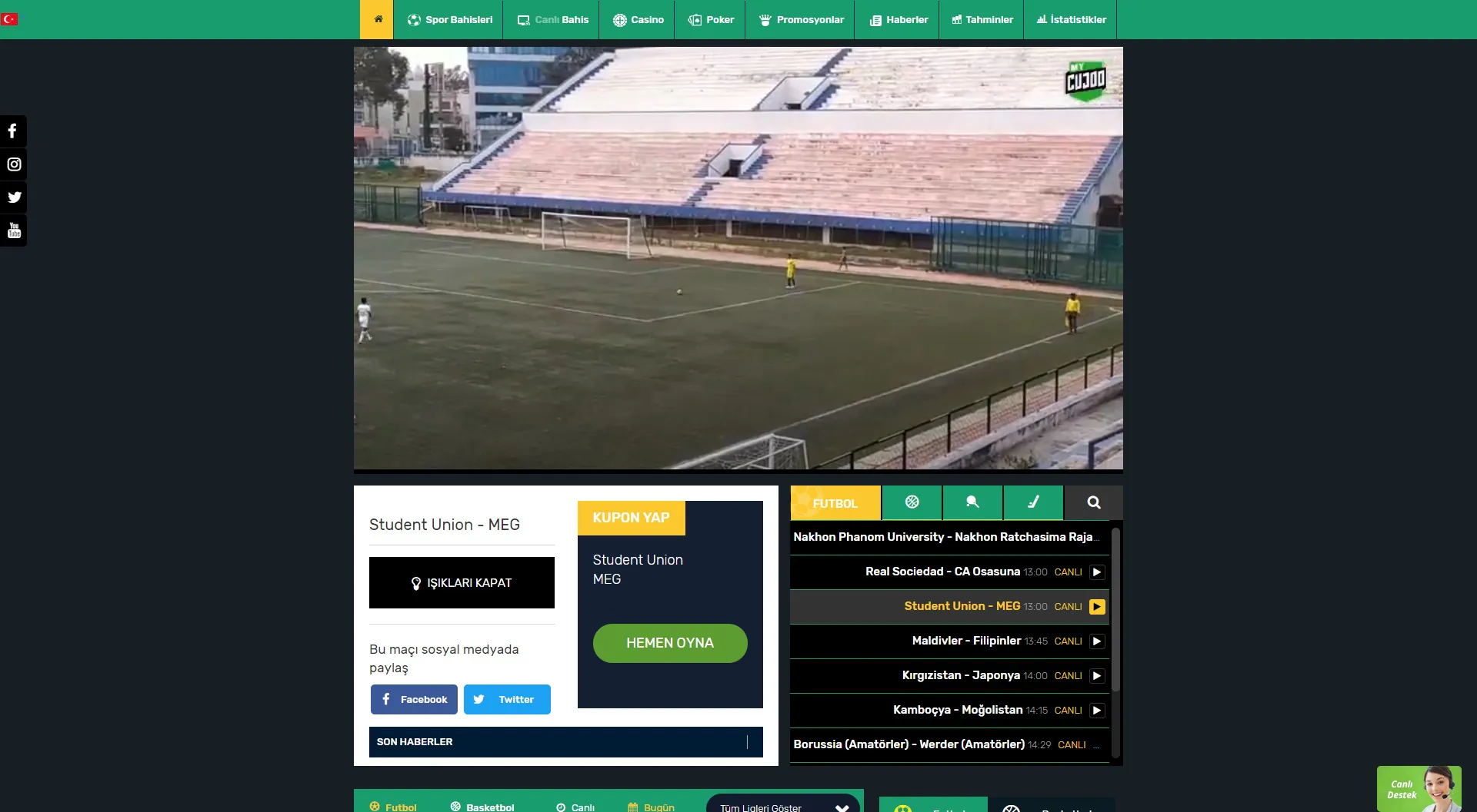 Canlı TV uygulamasının alt bölümünde bulunan bir seçenektir. İzlediğiniz karşılaşma için kupon oluşturmanıza yardımcı olur. Kupon yapmak isteyen kişilerin öncelikle siteye üyelik işlemi gerçekleştirmiş olması gerekir.
