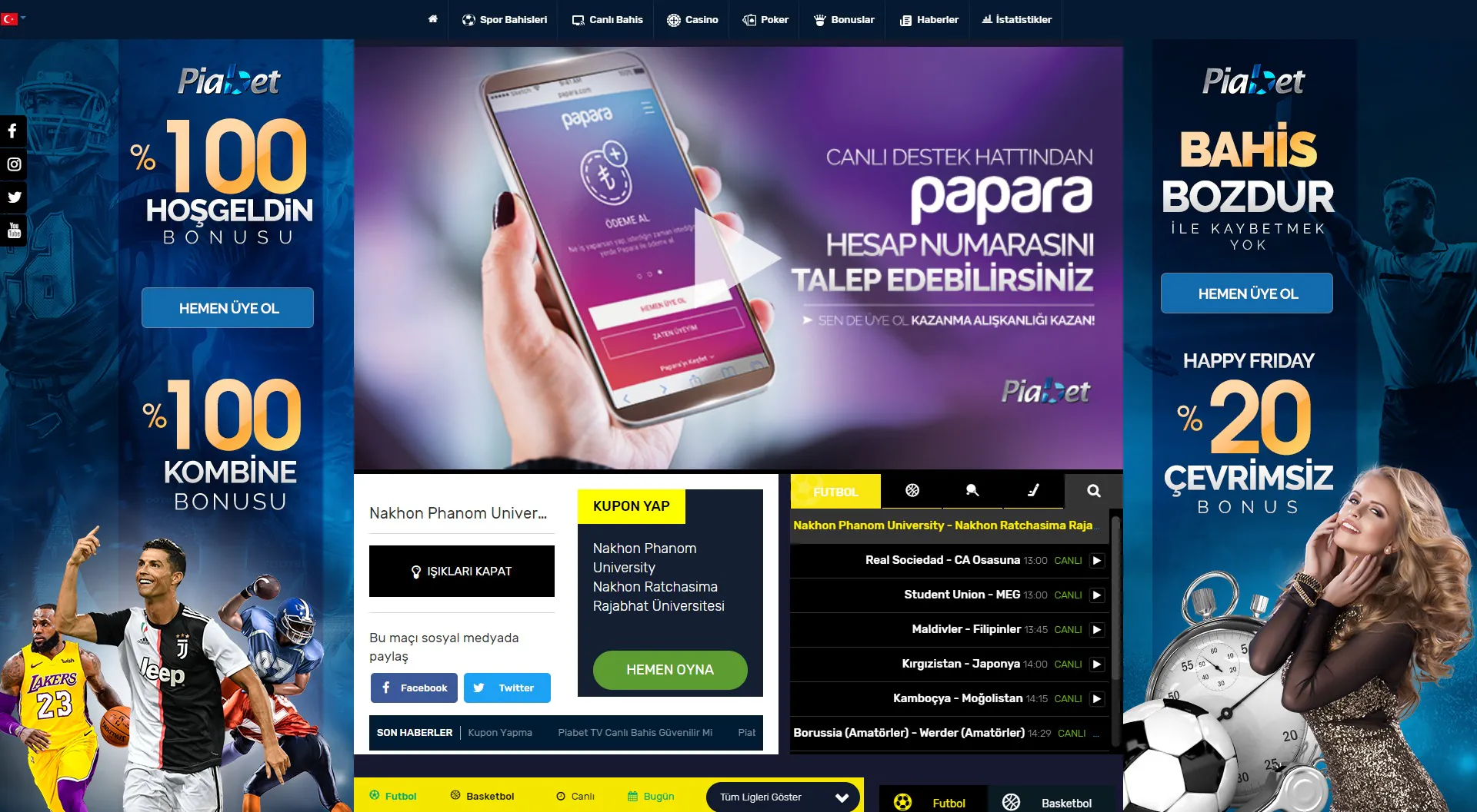 Kupon ya da bahis yapmak Piabet TV bölümünde oldukça pratiktir. Oranlar ve takımlar belirlendiğinde bahis daha da kolay hale gelir. Maddi kayıp vermemek adına yatırım yaparken ise dikkatli olmak önem taşır. İlk kez bahis yapacakların risk almamaları ve banko maçları tercih etmeleri daha yararlıdır.
