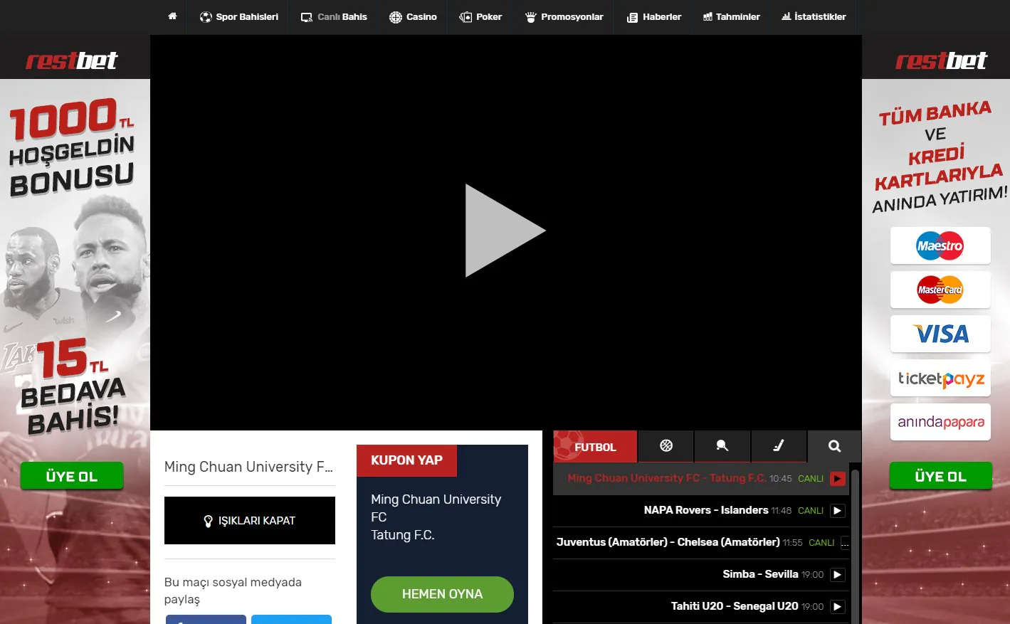 Bahis sitesinin kullanıcılarına sağlamış olduğu en büyük avantajlardan bir tanesi de canlı bahis bölümünde yer alan Restbet TV seçeneğidir. Bu sayede bir yandan bahislerinizi yaparken diğer yandan da canlı maçlarınızı izleyebilirsiniz.
