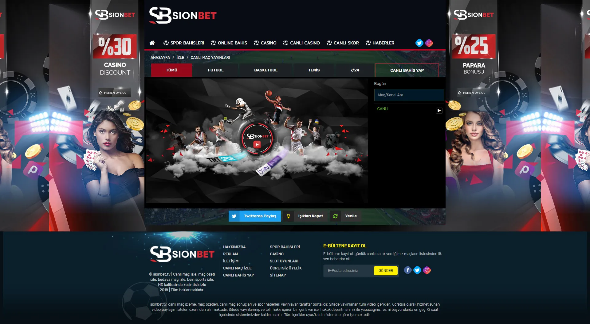 Sionbet bahis sitesi içerisinde birçok farklı uygulama seçeneği yer alır. Bu seçeneklerden en popüler olanı ise bahis sitesinin canlı maç yayını uygulamasıdır. Canlı olarak karşılaşmaları sorunsuz bir şekilde takip edebileceğiniz bu seçenek son derece güvenlidir.