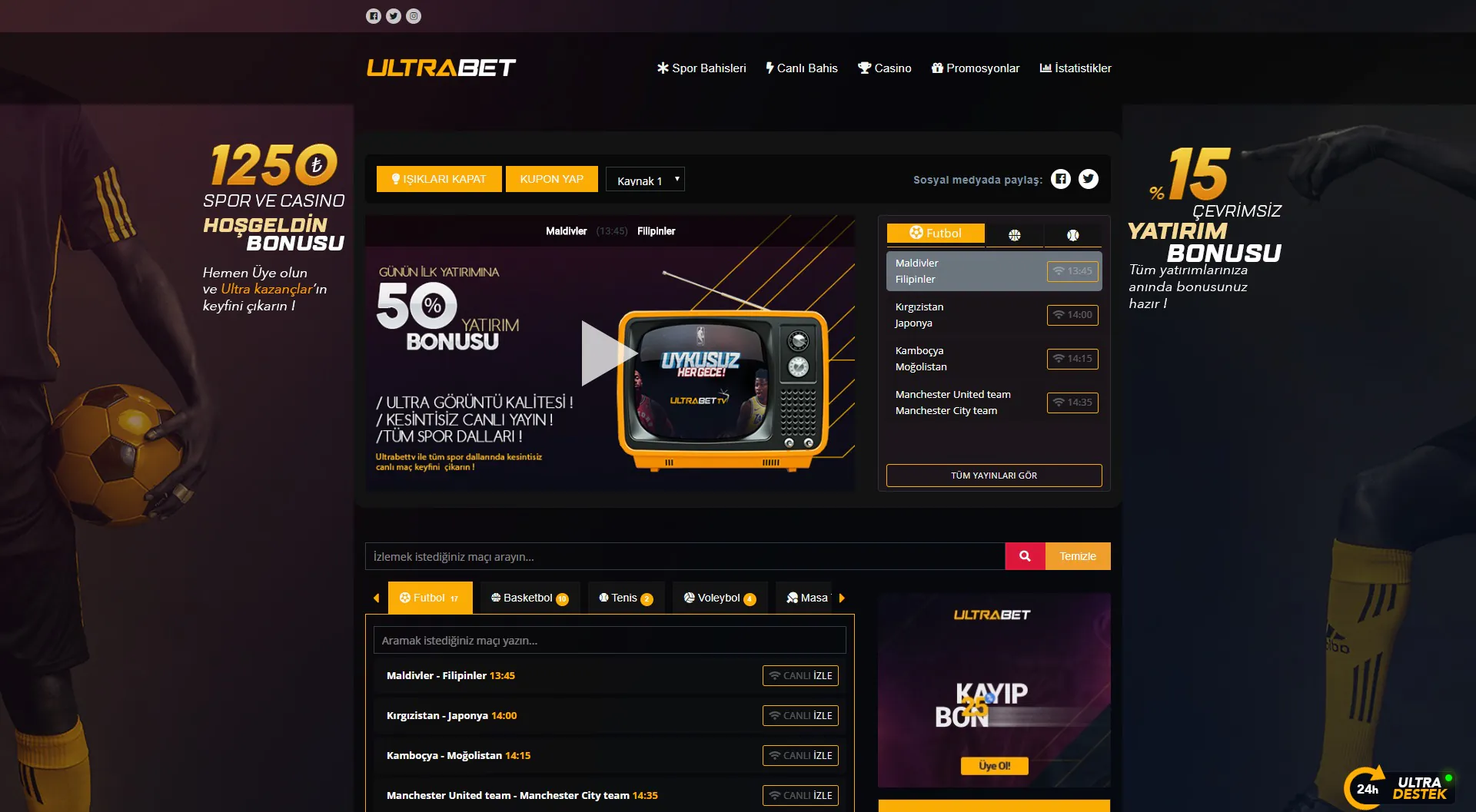 Ultrabet TV sistemi kapsamında kullanıcıların canlı bahis oranlarını analiz etmeleri artık daha kolay bir hal alacak. Siz de en kısa sürede oranları analiz ederken aynı zamanda müsabakaların genel gidişatını da kontrol edebileceksiniz.
