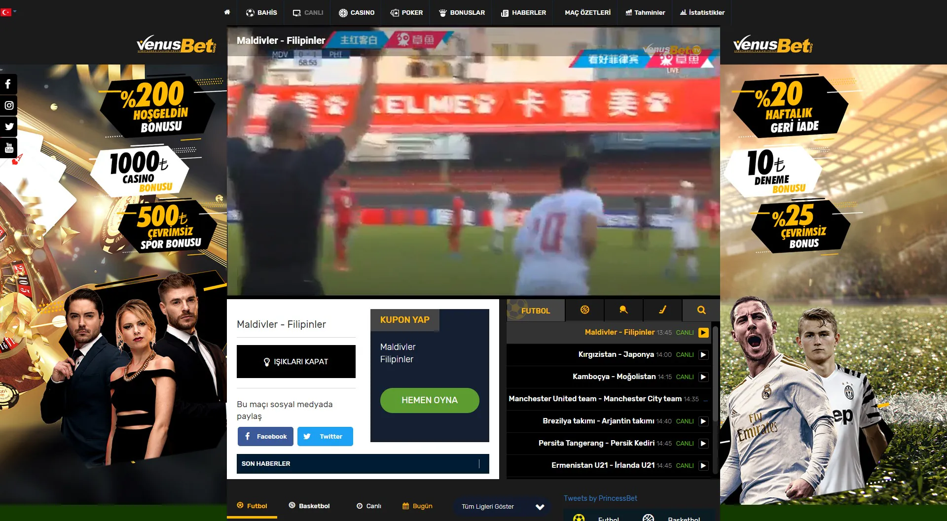 Venusbet TV sayesinde en kısa sürede yüksek verimlilik ile müsabakaları izleme hakkını elde edeceksiniz. Venusbet sizin için verimliliği en yüksek dereceye çıkarmak için özel olarak tasarlanmıştır. Kullanıcı memnuniyetini ve kazanımını maksimize etmek üzere tasarlanmış olan bu sistem sizin için verimliliğin temel adreslerinden biri olacaktır. Kayıt aşamasını tamamladıktan hemen sonra anında sisteme erişim sağlayabilir ve müsabakaları canlı olarak takip etmenin tadını çıkarabilirsiniz.